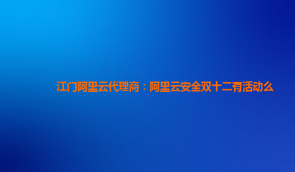 江門阿里云代理商:阿里云安全雙十二有活動么