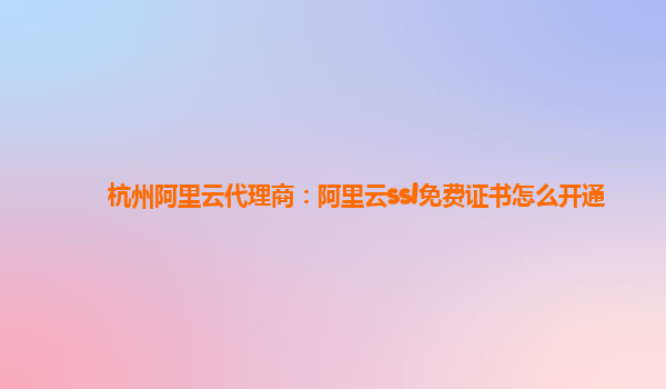 杭州阿里云代理商:阿里云ssl免費(fèi)證書怎么開通