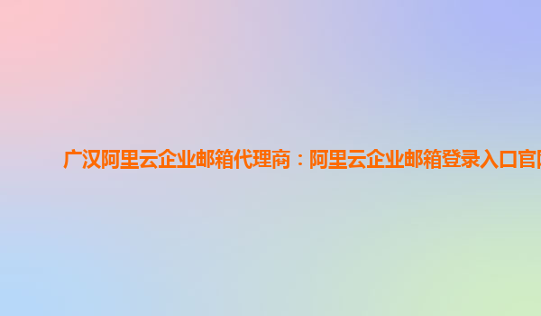 廣漢阿里云企業(yè)郵箱代理商:阿里云企業(yè)郵箱登錄入口官網(wǎng)