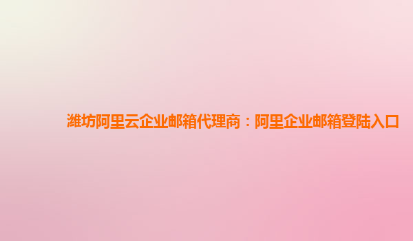 濰坊阿里云企業(yè)郵箱代理商:阿里企業(yè)郵箱登陸入口