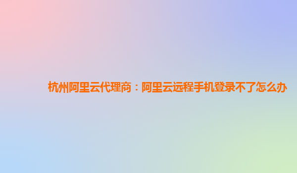 杭州阿里云代理商:阿里云遠(yuǎn)程手機登錄不了怎么辦