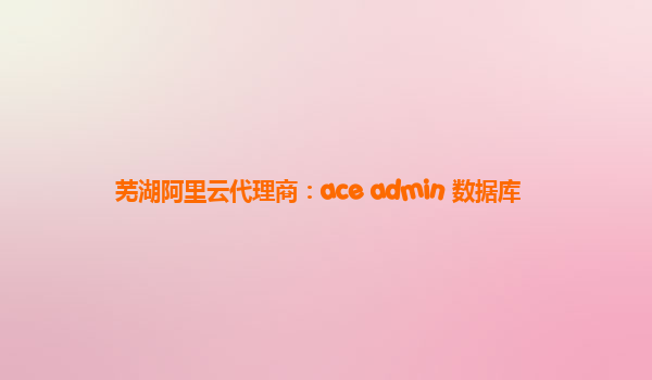 蕪湖阿里云代理商:Ace Admin數(shù)據(jù)庫(kù)