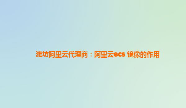 濰坊阿里云代理商:阿里云ecs 鏡像的作用