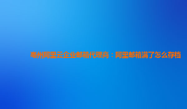 亳州阿里云企業(yè)郵箱代理商:阿里郵箱滿了怎么存檔
