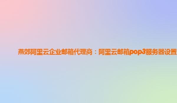 燕郊阿里云企業(yè)郵箱代理商:阿里云郵箱pop3服務(wù)器設(shè)置
