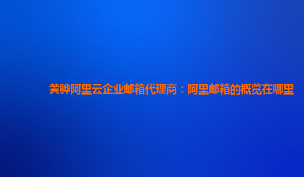 黃驊阿里云企業(yè)郵箱代理商:阿里郵箱的概覽