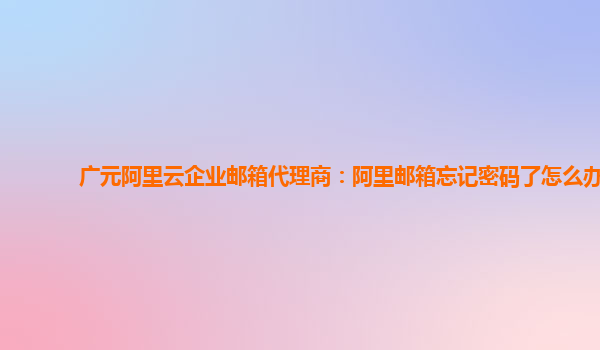 廣元阿里云企業(yè)郵箱代理商:阿里郵箱忘記密碼了怎么辦