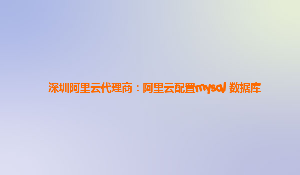 深圳阿里云代理商:阿里云配置MySQL數(shù)據(jù)庫