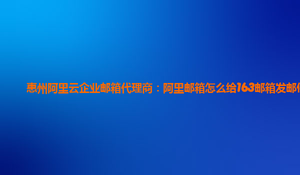 惠州阿里云企業(yè)郵箱代理商:阿里郵箱怎么給163郵箱發(fā)郵件