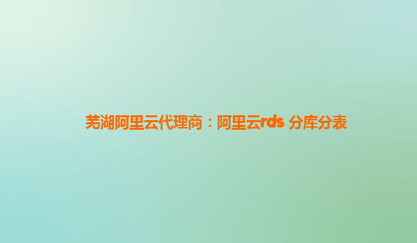 蕪湖阿里云代理商:阿里云rds 分庫分表