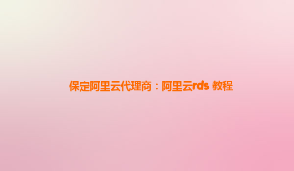 保定阿里云代理商:阿里云rds+教程