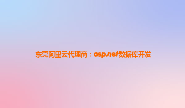 東莞阿里云代理商:asp.net數(shù)據(jù)庫開發(fā)