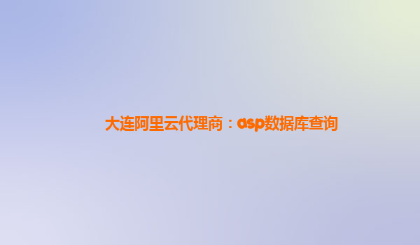 大連阿里云代理商:asp數(shù)據(jù)庫查詢