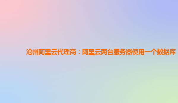 滄州阿里云代理商:阿里云兩臺服務器使用一個數據庫
