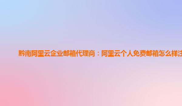 黔南阿里云企業(yè)郵箱代理商:阿里云個人免費郵箱怎么樣注冊