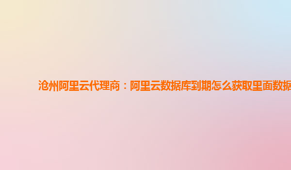 滄州阿里云代理商:如何獲取到期的阿里云數(shù)據(jù)庫數(shù)據(jù)