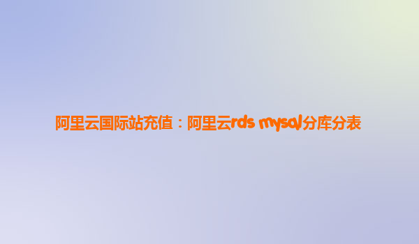 阿里云國際站充值:阿里云rds mysql分庫分表