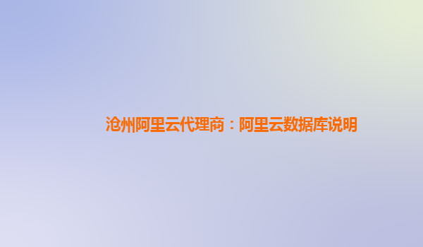 滄州阿里云代理商:阿里云數(shù)據(jù)庫說明
