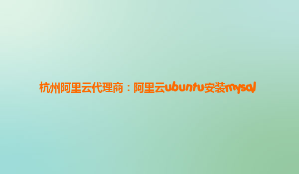 杭州阿里云代理商:阿里云ubuntu安裝mysql