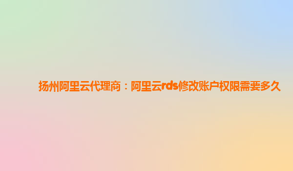 揚州阿里云代理商:阿里云rds修改賬戶權限需要多久