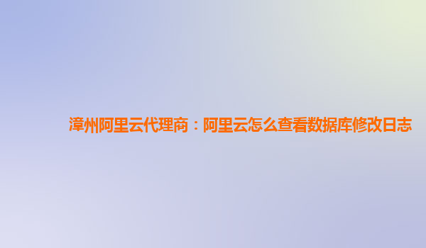 漳州阿里云代理商:阿里云怎么查看數(shù)據(jù)庫修改日志