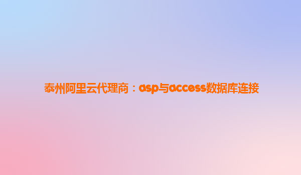 泰州阿里云代理商:ASP與Access數(shù)據(jù)庫連接