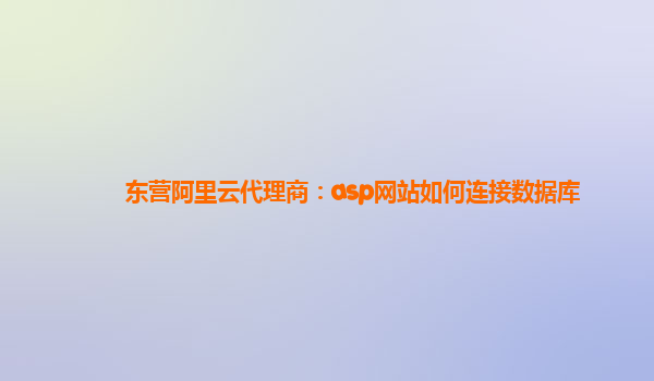 作為東營阿里云代理商,我們提供優(yōu)質(zhì)的服務和技術(shù)支持,幫助客戶搭建穩(wěn)定的ASP網(wǎng)站并連接數(shù)據(jù)庫。下面我們將介紹如何實現(xiàn)ASP網(wǎng)站與數(shù)據(jù)庫的連接: