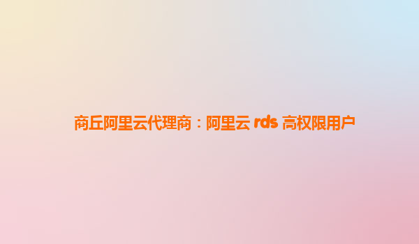 商丘阿里云代理商:阿里云 RDS 高權(quán)限用戶