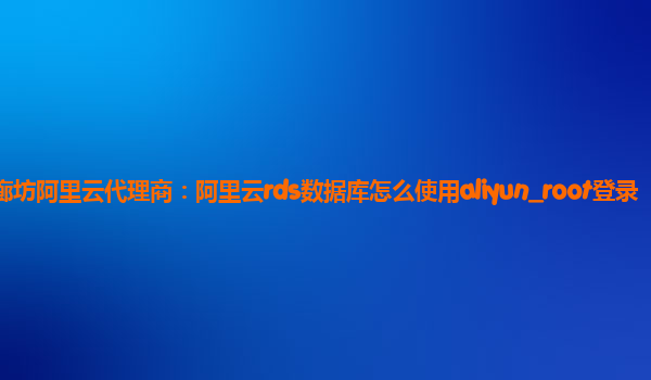 如何使用阿里云RDS數(shù)據(jù)庫中的aliyun_root登錄