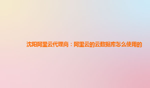 沈陽阿里云代理商:阿里云的云數(shù)據(jù)庫怎么使用的
