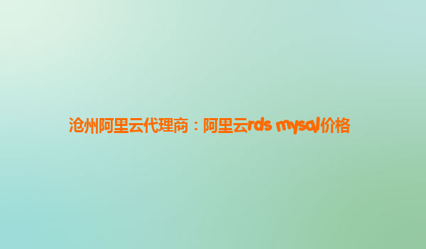滄州阿里云代理商:阿里云rds mysql價(jià)格