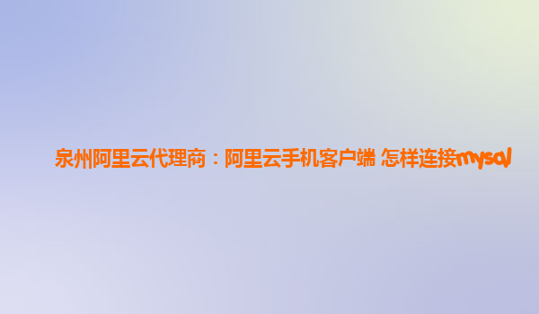 泉州阿里云代理商:阿里云手機(jī)客戶端怎樣連接MySQL