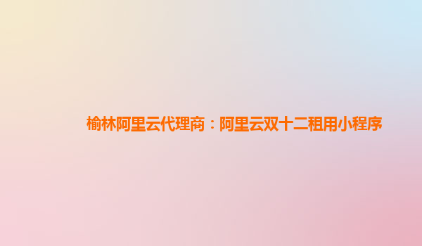 榆林阿里云代理商:阿里云雙十二租用小程序