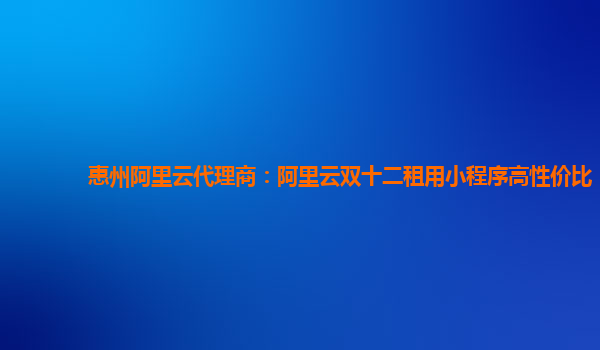 惠州阿里云代理商:阿里云雙十二租用小程序高性價比解讀