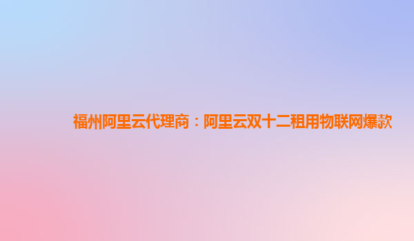 福州阿里云代理商:阿里云雙十二租用物聯(lián)網(wǎng)爆款