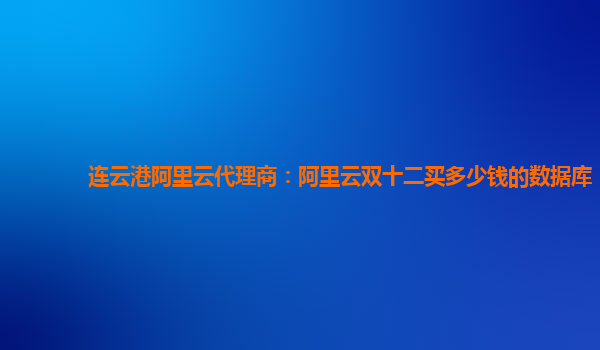 連云港阿里云代理商:阿里云雙十二優(yōu)惠活動(dòng)數(shù)據(jù)庫(kù)購(gòu)買指南