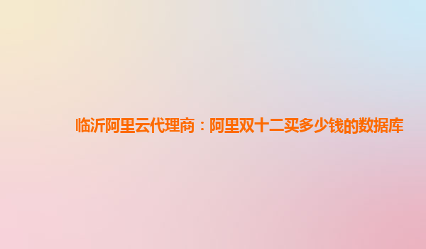 臨沂阿里云代理商:阿里雙十二購買數(shù)據(jù)庫的優(yōu)惠價格
