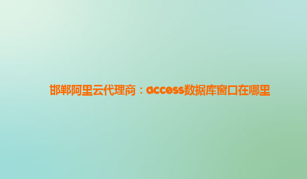 邯鄲阿里云代理商:access數(shù)據(jù)庫窗口在哪里