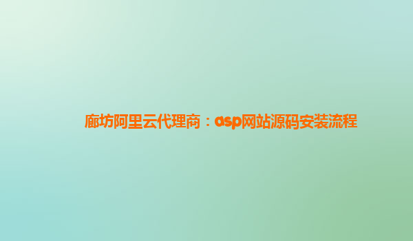廊坊阿里云代理商:ASP網(wǎng)站源碼安裝流程