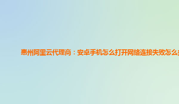 作為惠州阿里云代理商,我們深知網(wǎng)絡(luò)連接對現(xiàn)代生活的重要性。當(dāng)您在安卓手機上遇到網(wǎng)絡(luò)連接失敗的問題時,我們提供以下簡單明了的解決方法,同時結(jié)合阿里云和阿里云代理商的優(yōu)勢,讓您快速解決問題。