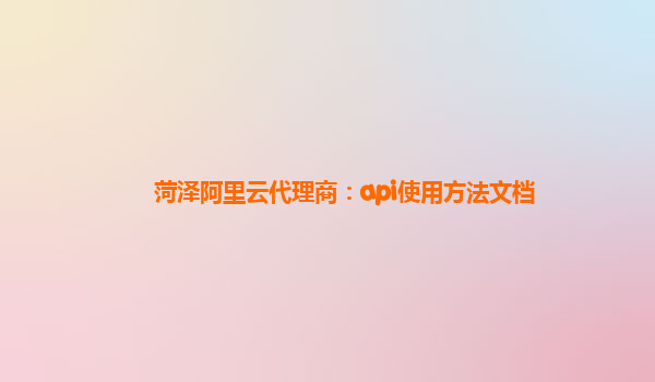 菏澤阿里云代理商:api使用方法文檔