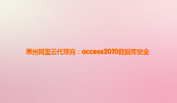 惠州阿里云代理商:Access 2010數(shù)據(jù)庫(kù)安全