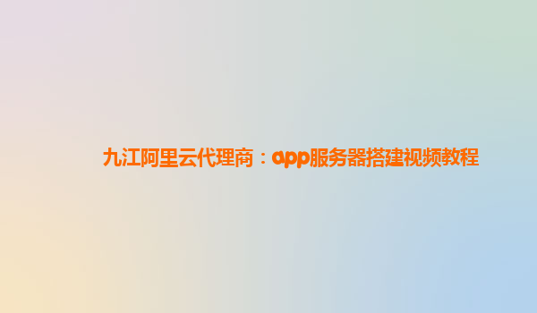 九江阿里云代理商:app服務(wù)器搭建視頻教程