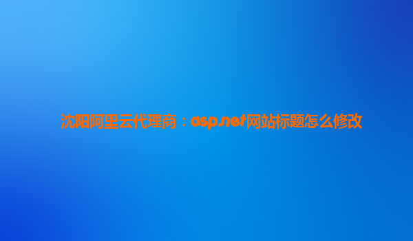 如何在沈陽阿里云代理商平臺上修改ASP.NET網(wǎng)站標題