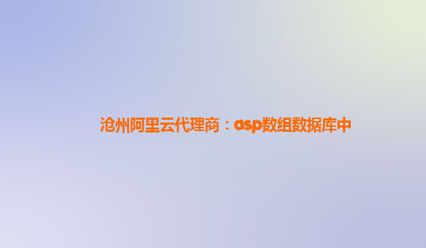 滄州阿里云代理商:ASP數(shù)組數(shù)據(jù)庫中的應(yīng)用及阿里云優(yōu)勢分析