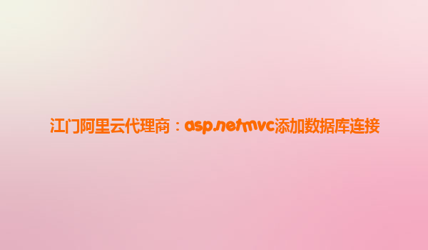 江門阿里云代理商:ASP.NET MVC添加數據庫連接的教程與阿里云優(yōu)勢分析