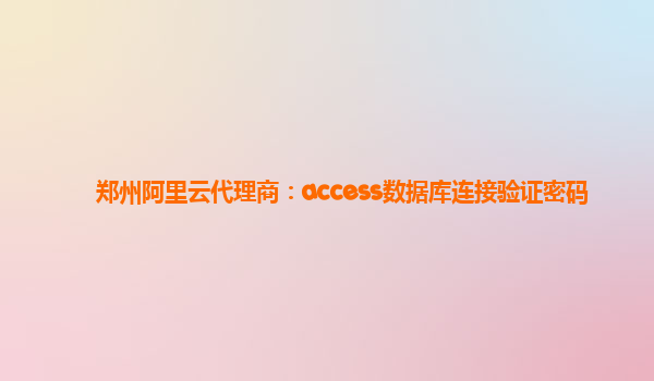 阿里云在鄭州市場(chǎng)的優(yōu)勢(shì)及通過(guò)Access數(shù)據(jù)庫(kù)連接驗(yàn)證密碼的應(yīng)用