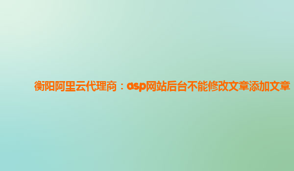 衡陽阿里云代理商:解決ASP網(wǎng)站后臺不能修改文章添加文章問題