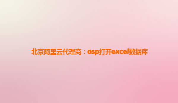 北京阿里云代理商:ASP打開Excel數(shù)據(jù)庫