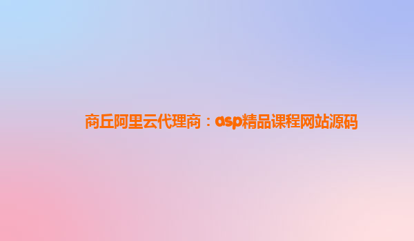 商丘阿里云代理商:ASP精品課程網(wǎng)站源碼